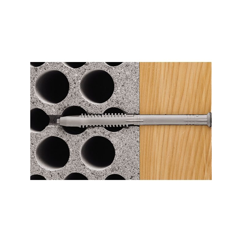 Équipée d'une vis-prémontée tête fraisée pour ossature et cadre. Les lamelles de blocage asymétriques s'expansent et établissent un verrouillage de formes dans les matériaux creux. À utiliser dans le béton et briques. Pour fixer portails, portes, ossatures de bardage, façades. Boîte de : 50