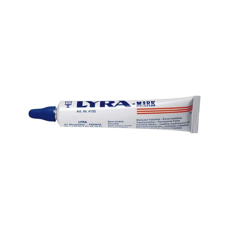 Tube marqueur avec de la peinture liquide. Sèche en quelques minutes, permanent, contenance 50 ml. Pour marquer sur des surfaces métalliques (même huileuses), bois, plastique, caoutchouc, cuir, céramique. Conditionnement : boîte de 10
