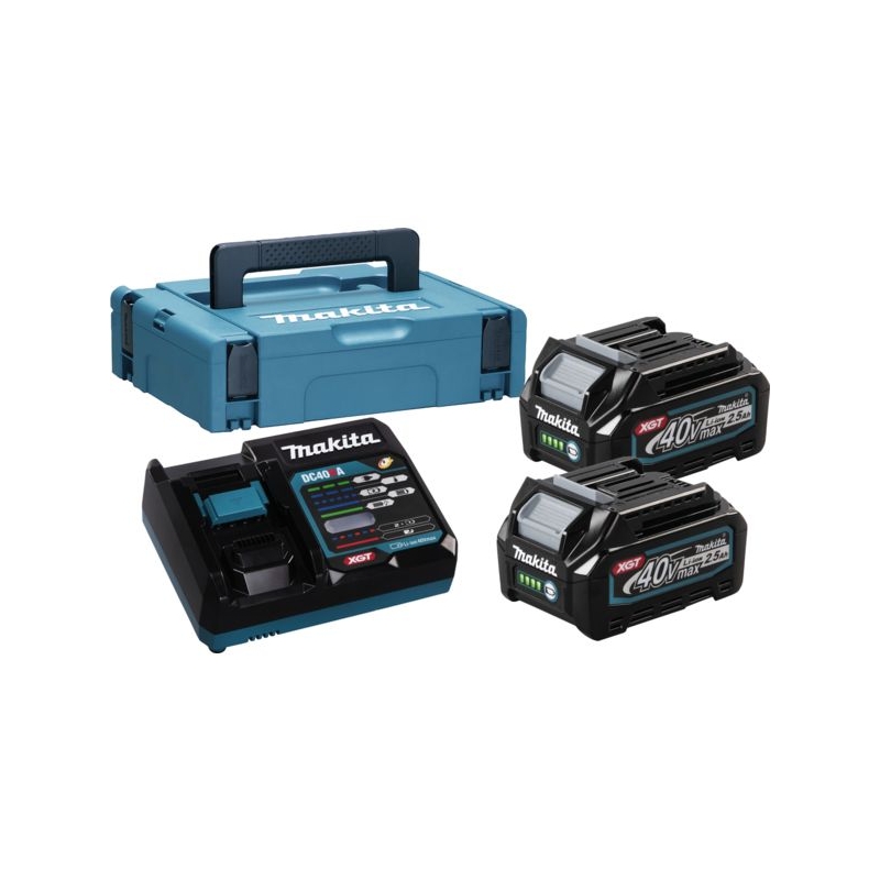 Pack énergie composé de 2 batteries 40 V - 4,0 Ah Li-Ion avec témoin de charge intégré et d'un chargeur 191E07-8. Technologie Li-Ion. Livré en coffret Mak-Pac.