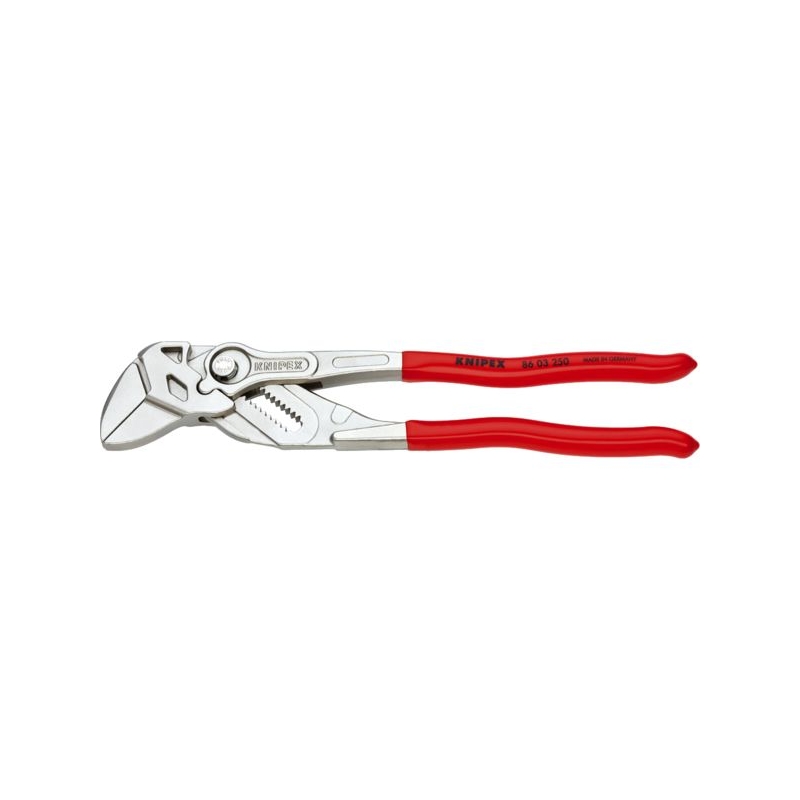 Remplace tout un jeu de clés plates, métriques et en pouce. Mâchoires lisses n’endommageant pas les supports. Réglage par simple pression du bouton. Poignées gainées en PVC.