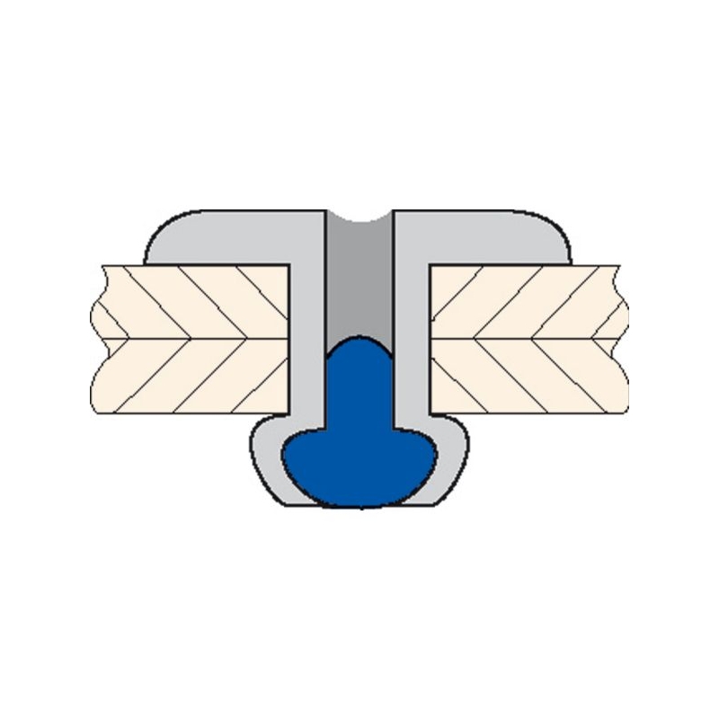 Rivet aveugle standard à tête large Ø 14 mm. Corps aluminium et tige acier. Ø perçage : 4,9 mm Boîte de : 250